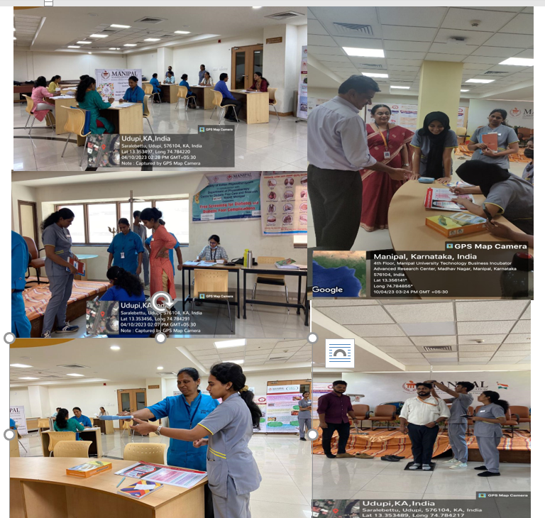 As part of world health day 2023 Clinical Nutrition and Dietetics program, Manipal College of Health Professions and Kasturba Hospital Manipal in assosiation with Centre for diabetic foot care and research , MAHE, Manipal organized a Nutrition Awareness Programme for non teaching staffs of manipal.edu building on 01/04/2023 at counselling hall, ground floor , manipal.edu building from 2pm to 5pm.