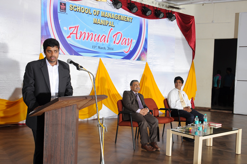 School of Management (SOM) celebrated its Annual Day on March 15, 2014. Mr. Kiran Punja, Senior Manager (Human Resources), EMEA & APAC Regions, Verisign Services India Private Ltd., was the chief guest of the function. Mr. Kiran Punja is an alumnus of the first batch of SOM (formerly known as Manipal Institute of Management). Addressing the students, Mr. Kiran Punja explained the preparedness required for a fresher in the corporate world. He also explained the challenges the HR professionals faced when handling the Generation Z.