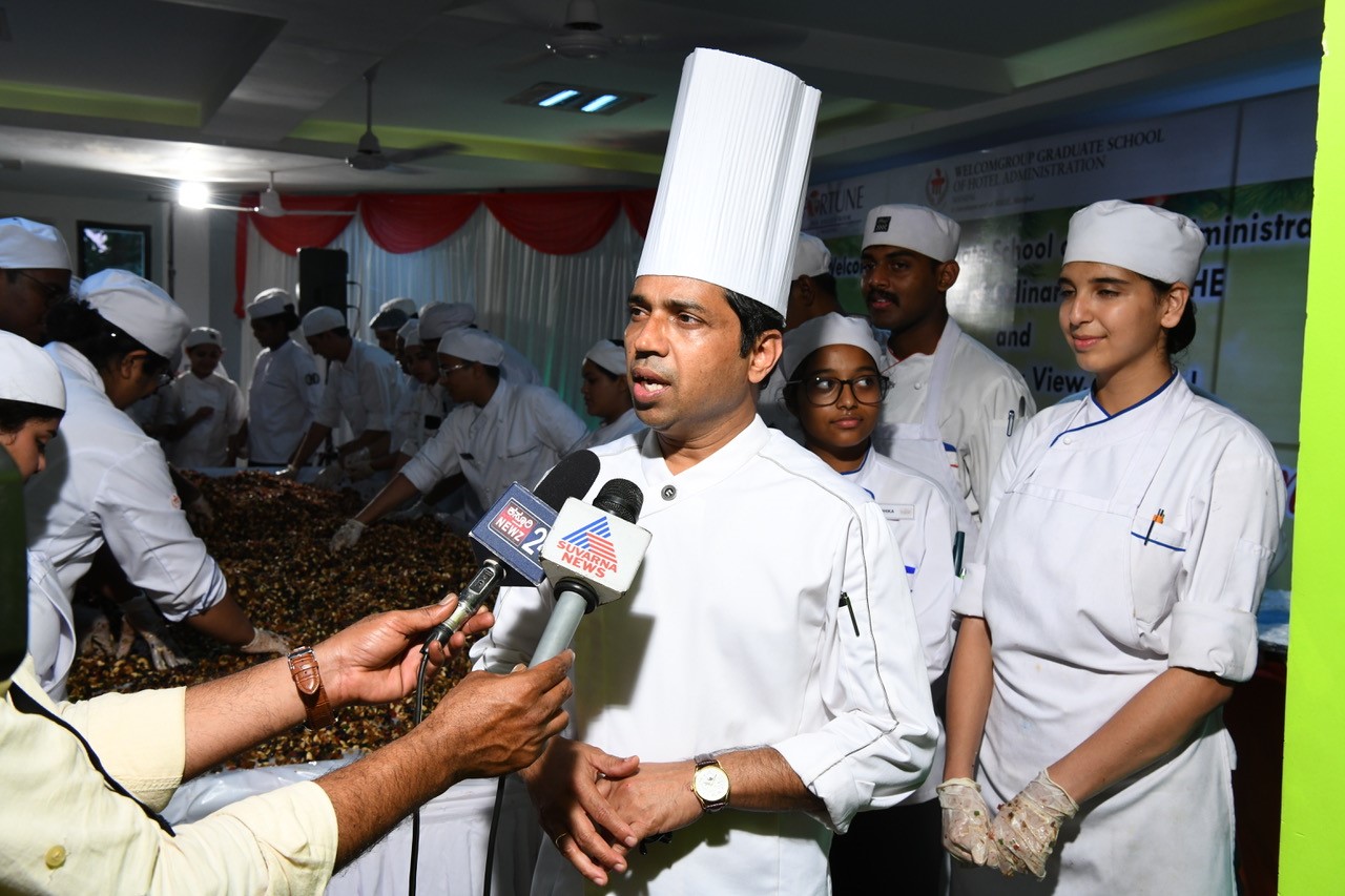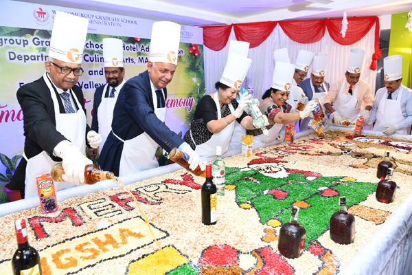 The event was made even more special by the presence of the Madam Vasanthi Pai - Chairperson Hostel Committee, the esteemed dignitaries of Manipal Academy of Higher Education were Pro Chancellor of MAHE Dr. H.S. Balal, Dr, Vinod Bhatt - Vice Chancellor, Dr. Poornima Baliga - Pro Vice Chancellor (Health Sciences), Dr PLNG Rao Pro Vice Chancellor (Quality Assurance), Dr Narayan Sarabhit - Registrar, Dr Vinod Thomas - Registrar Evaluation and the 10th Course BHM Alumni of WGSHA made the event even more memorable. They were welcomed with heartfelt warmth and offered Chef caps and aprons to adorn.