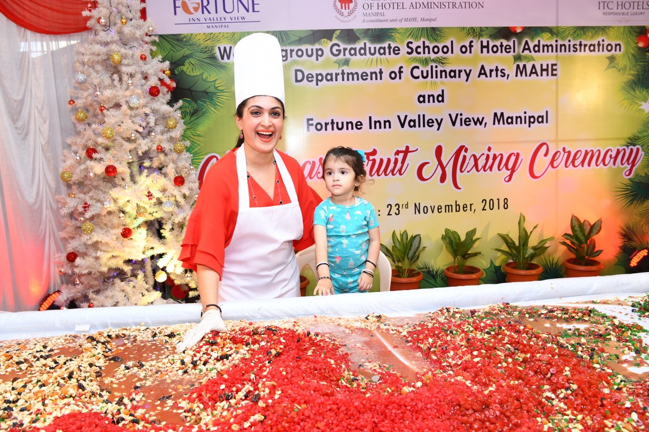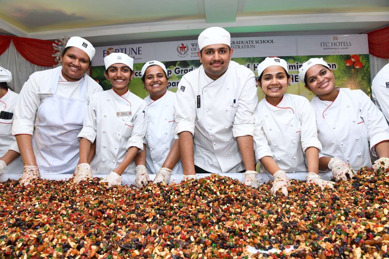 Welcomgroup Graduate School of Hotel Administration, Manipal Academy of Higher Education (MAHE) in collaboration with Fortune Inn Valley View celebrated the harbinger of the approaching Christian Christmas Festival - The Fruit Mixing Ceremony on the Friday 23rd of November 2018 at WGSHA Hostel Mess. The event was conducted holding up the true Christmas spirit as the entire venue was decorated beautifully keeping the theme in mind, giving a very festive mood to the whole occasion.