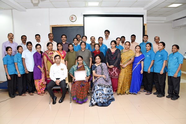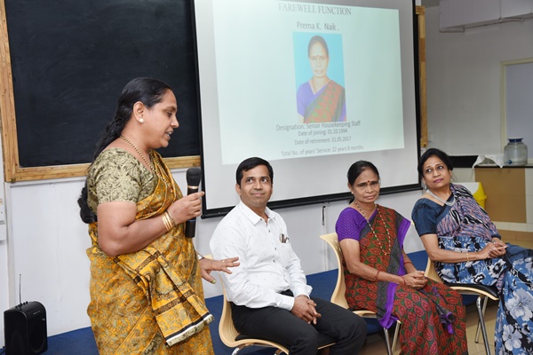 WGSHA organised a farewell function to outgoing staff Prema K Naik senior Housekeeping Staff who worked in the college for 22 years 8 months