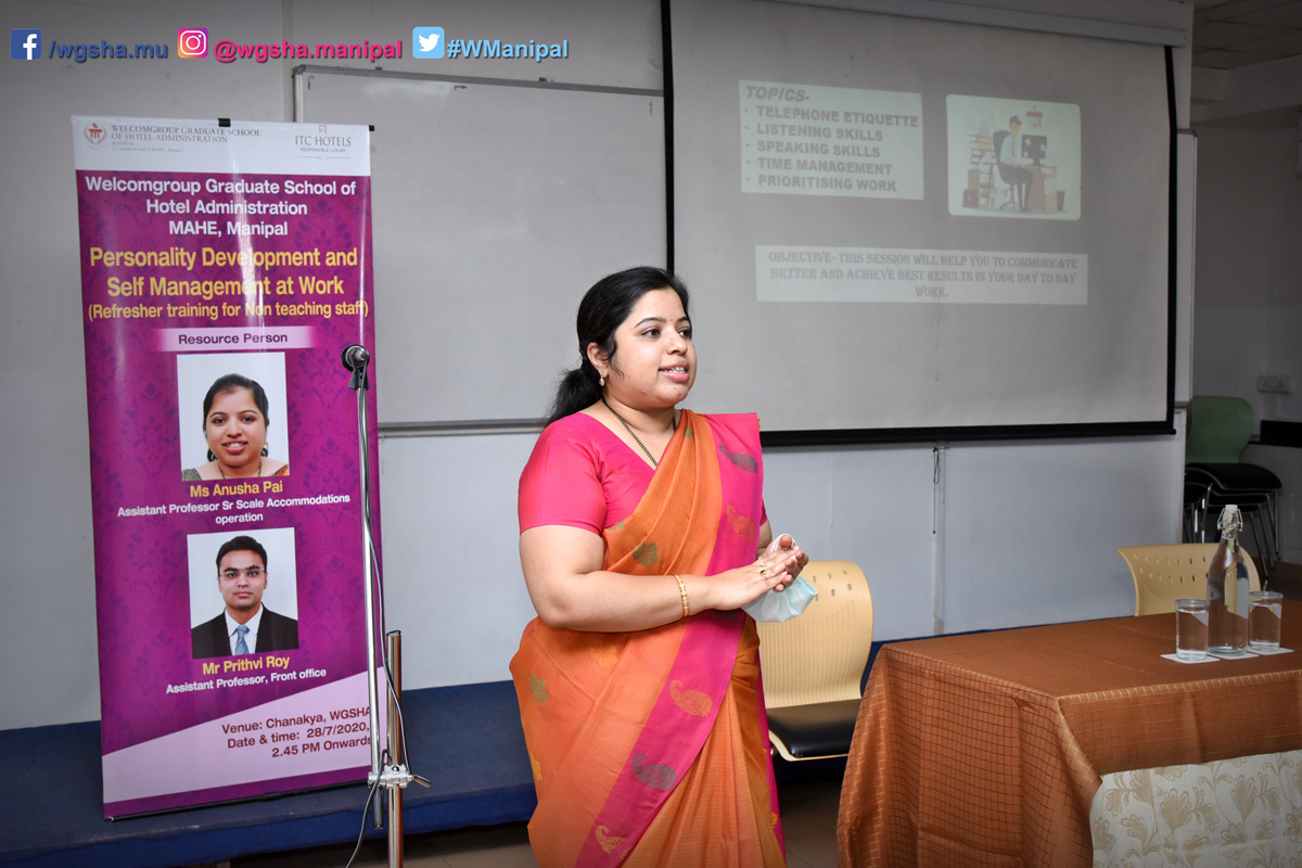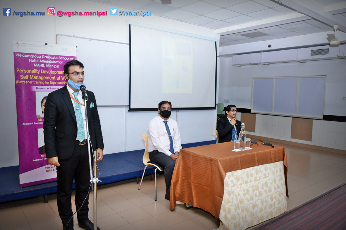 The training was organized in the presence of our principal - Chef K. Thirugnanasambantham & Vice-principal Mr. P. Rajshekhar The resource person was - Mr. Prithvi Roy-Assistant professor-Front Office & Ms. Anusha Pai-Assistant Professor-Accommodations Operations.