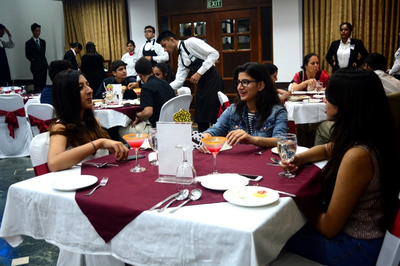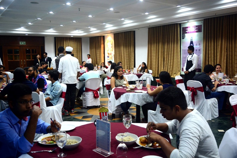The Californian Retreat Food Festival conducted by Shivaji house OVERALL HEAD: Mr. AYUSH MELWANI & Ms. SEEMA MIRZA OVERALL UNDERSTUDY: Mr. VEDANT ARYAN Introduction about the theme of food festival: Menu inspired by popular food culture in the state of California, USA Canape Tacos from the Mexico, Fish n Chips from San Francisco and German influence on Roast Chicken with a Bavarian Touch. Popular food in CA. Keeping in mind the theme for the fest, the decor was minimalistic, infused with the colors of black, white and red, with the students involved also dressed in formals in an effort to give customers a complete fine dining experience. Diners could get glimpses of Hollywood from the paintings as well as the live music performed by the music club. The fest’s menu was carefully chosen, prepared and served so as to put forth popular food items from California. The five-course meal for the evening began with a choice of beverage where diners could choose between Hollywood Sunset , a strawberry consommé topped with fresh pineapple juice and ginger ale, or Silver Lining, a vanilla tea milkshake with a hint of cinnamon and topped off with whipped cream, both of which are prepared at the ‘Grizzly’s Bar’ counter. Drinks were followed by a small bite called Sheen’s Love Bite, an amuse-bouche taco with a relish, which in turn paved way for a deconstructed smoked tomato soup which was uniquely presented to guests in a delicate round flask. For the same value, guests could make a choice between vegetarian and non-vegetarian appetizers and main course based on their preference. Taking inspiration from Hollywood, the veg appetizer was named Napa’s Veggie Sliders, which is an Italian bun served alongside chips and fresh salad, while the spinach pappardelle cooked in a burnt garlic and mushroom sauce along with its accompaniments served as main course was aptly called Al Pacino’s Feast. The non-vegetarian section offered batter fried fish and onion rings, whereas the Django’s Bavarian Meal for the main course comprised of roasted chicken rubbed in three spices served with mustard gravy and herbed rice. For desert, there was Seth Rogen’s Climax – a compilation of peanut butter chocolate brownie, toasted marshmallows and caramelized popcorns topped with a sinful fudge sauce.