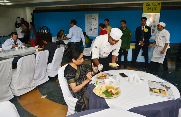 As a part of Welcomgroup Graduate School of Hotel Administration tradition, the students of Batch 1 of the 29th Course BHM conducted a theme lunch for our faculty on the 27th of September, 2016, named the “Konkan Express”. The theme of the lunch was based on a culinary journey from Mumbai to Goa by train, signifying the several major stops on the way as well as the mouth watering food you can get your hands on as passengers. In the konkan Express, we highlighted five major stops from Mumbai to Goa, namely, Andheri, Chiplun, Rathnagiri, Thivim and Madgaon. The venue for our theme lunch was our mock restaurant Chaya, which was setup as a train platform and the seating arrangement was made as such that the guests felt they were sitting inside a train itself. At different parts of the restaurant, we set up stalls, as if to signify the various stations that were being highlighted. The guests began their culinary journey from Andheri, where dishes such as Missal Pav and Keema Pav were served. On their stop at Chiplun, they relished the mouth watering chilli pakodas. To further create an ambiance of a train journey, servers dressed up as road side vendors served dishes like Sol Khadi and Masala Nachni Papad, along with refreshments of Coke and Fanta. As the guests reached their last three stops, they were treated with Mango Barfi’s, the sweet delicacy of Rathnagiri, as well as Banana Steamed Fish as well as plantains from Thivim, to spice things up. On reaching Madgaon, the passengers reached their final culinary destination and devoured Thali’s of food comprising of Goan Specialities such as Pork Vindaloo, Chicken Xaccuti as well as Sorak Khadi, with a side of Pulao, steamed Sanna’s , and spicy house made Chilli Pickle. To round up their journey, guests were also served with the Goan Specialty Bibenca and were also served hot Cutting Chai by the “roadside vendors”. The students of Batch 1 were all actively involved in the success of this theme lunch, from the preparation of the food, the decoration of the restaurant as well as the service of the food.