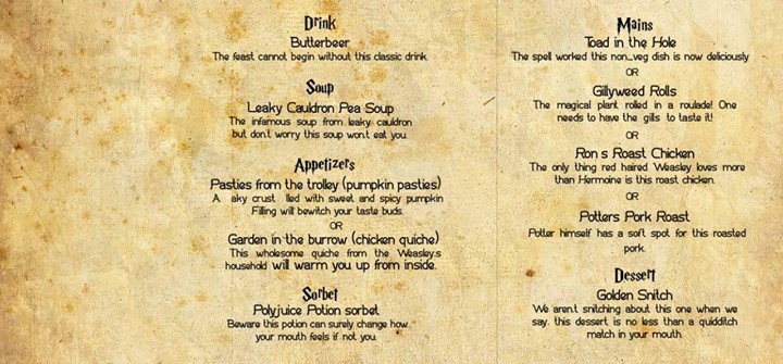 Department of culinary arts presenting 🚂 *Ticket to Hogwarts* - simulation on the Friday 16th November 2018