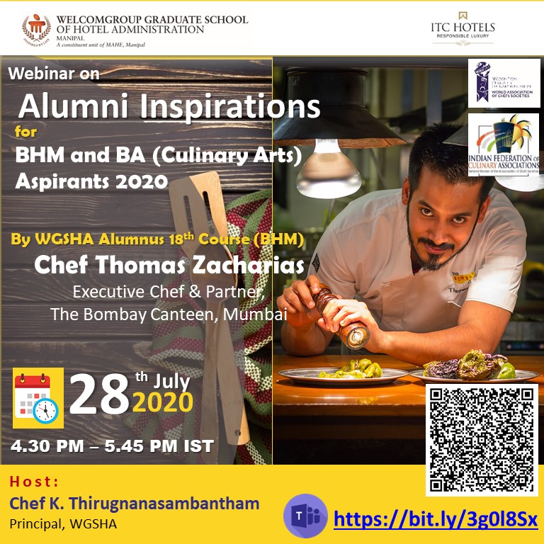 Webinar on 'Alumni Inspirations' by Chef Thomas Zacharias for BHM and BA (Culinary Arts) Aspirants 2020