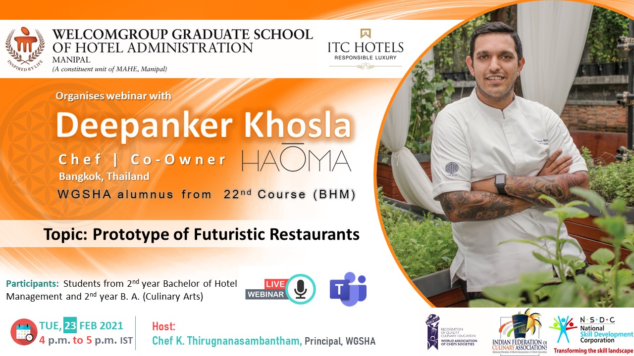 Webinar on Prototype of Futuristic Restaurants by alumni Chef Deepanker Khosla