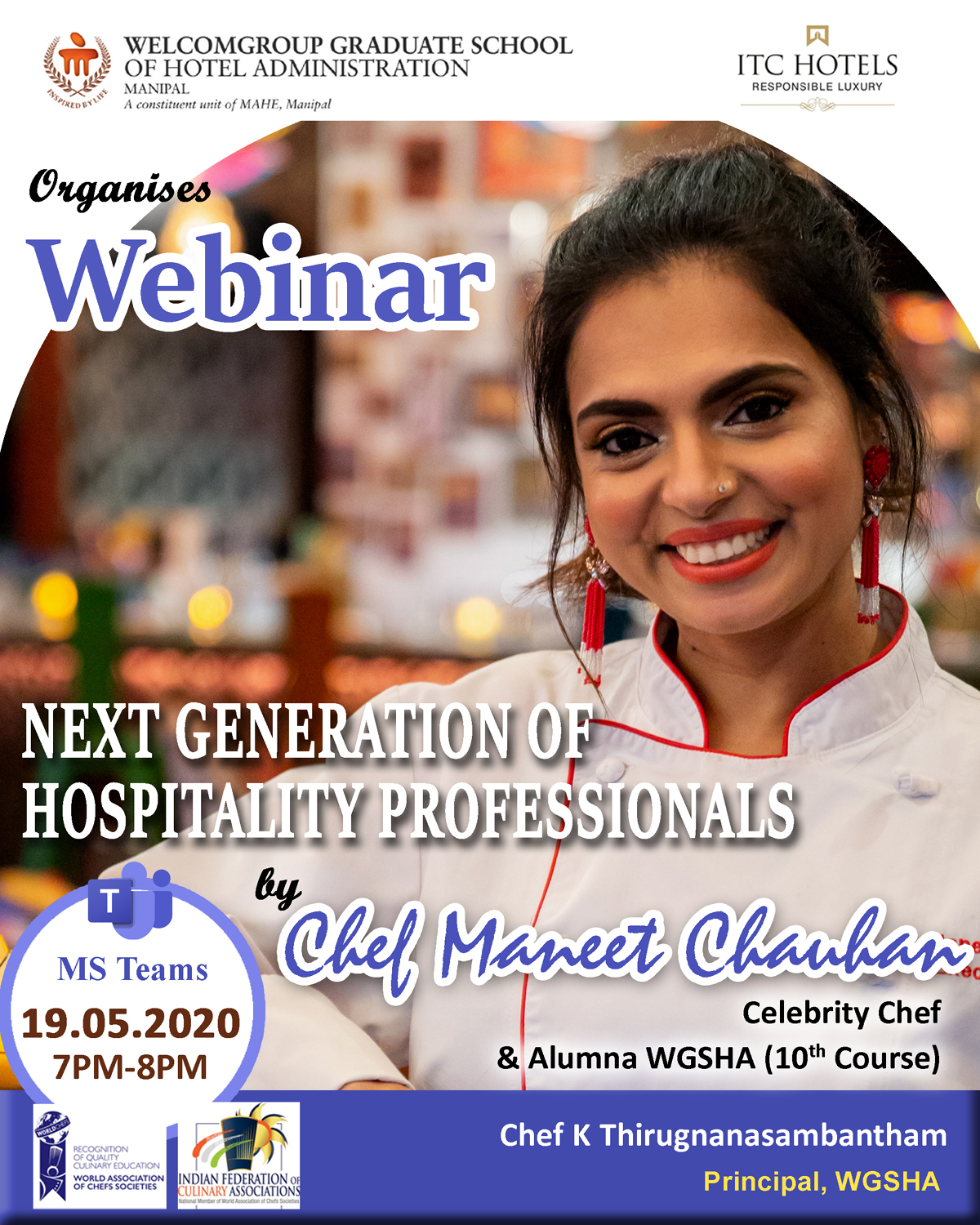Watch live webinar on 'Next Generation of Hospitality Professionals' with Chef Maneet Chauhan - Celebrity Chef and WGSHA Alumna from 10th Course (BHM)