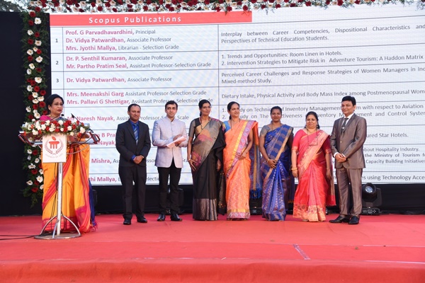 Principal of WGSHA, Prof. Parvadhavardhini Gopalakrishnan welcomed the dignitaries and guests and also presented the annual report for the year 2017-18, where she highlighted the college’s events and achievements during the year; awards and prizes won by students in sports, cultural and other extra-curricular competitions; guests visits; conferences and workshops organized by the college; faculty publications and accolades etc.