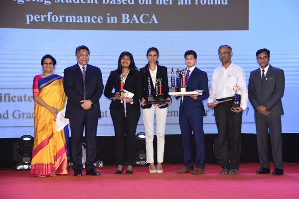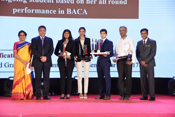 Other notable awards of the ceremony included Good Teacher Award won by Chef Manoj Belwal, Assistant Professor, Department of Food & Beverage Management, Ricky Victor D’Souza Memorial Award for overall excellence in Food and Beverage Production and Prof. Trevor Devas Cash Prize’ for Highest marks in Entrepreneurship both won by Mr Malshe Rohit Sanjay of BHM, G. Sathyavathi Award for the university topper in B.A. (Culinary Arts) won by Ms Avanthi which included a cash prize of Rs.15,000/- and a certificate, Best Sportsperson of the year- Female- Ms Darshana Gopinath and Best Sportsperson of the year- Male - Md. Adnan of BHM.