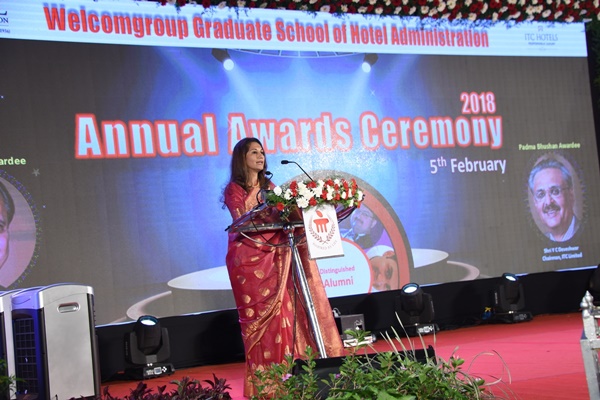 Welcomgroup Graduate School of Hotel Administration (WGSHA), a constituent unit of Manipal Academy of Higher Education, Manipal, celebrated the college’s Annual Awards Ceremony on February 5, 2018 at Fortune Inn Valley View, Manipal in presence of Chief Guest, Mrs. Benita Sharma, Area Manager, Golden Triangle & General Manager – Sheraton New Delhi Hotel, Hotels Division, ITC Limited, Mrs Vasanti R Pai, first lady of Manipal and Chairperson, MAHE Hostel Management Committee, Mrs Poornima Baliga, Pro Vice Chancellor (Health Sciences), Mr. Rajen Padukone, Group President, Manipal Education & Medical Group, Dr Narayana Sabhahit, Registrar, MAHE and other senior MAHE Officials.