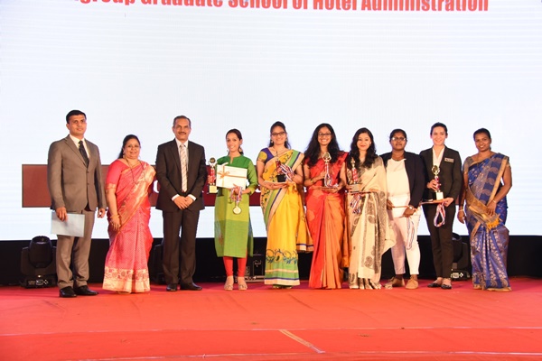 The important award winners of the evening were ITC Fellowship Awardees - Mr Malshe Rohit Sanjay, Mr Deepak D Viswanath, Ms Darshana Gopinath and Ms Pooja R Ankolekar; Chef Vikas Khanna Rolling Trophy - Ms Rashmi G R, instituted to honour a girl child with an excellent academic record in the field of culinary; Best Outgoing student of BHM - Ms Darshana Gopinath, Best Outgoing student of BA (Culinary Arts) - Ms. Amritha Ravi, Best Outgoing Student of MSc Dietetics and Applied Nutrition – Ms Rhea Katherine Dsouza, Best Outgoing Student of MSc Hospitality and Tourism Management - Ms Athira Rajagopal V. and Best Outgoing Students of Bachelor of Hotel Management, Travel & Tourism – Ms Mehak Mann and Mr Syed Yasin.