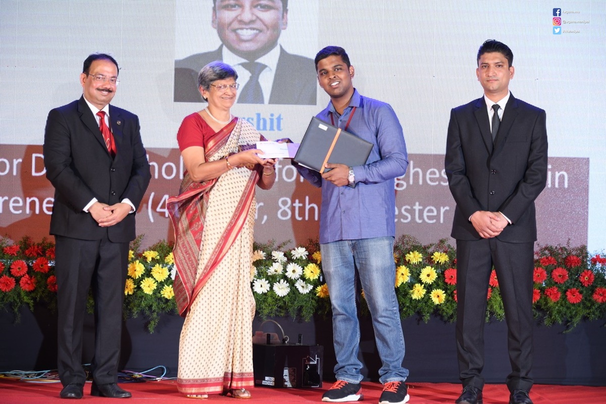 Other notable awards of the ceremony included Good Teacher Award won by Mr Manish T K and Mrs Meenakshi Garg, Chef Vikas Khanna Rolling Trophy won by Ms Sanjana Sridhar, Ricky Victor D’Souza Memorial Award for overall excellence in Food and Beverage Production won by Mr Saumye Kapoor, Prof. Trevor Devas Cash Prize for Highest marks in Entrepreneurship won by Mr Harshit, G. Sathyavathi Award for the university topper in B.A. (Culinary Arts) won by Ms Sanjana Sridhar, Best Sportsperson of the year- Female- Ms Sanjana Sridhar of BA (Culinary Arts) and Best Sportsperson of the year- Male - Mr Ishwar Ojha of BHM.