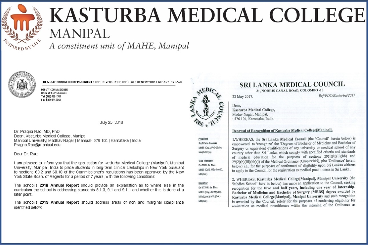 Kasturba Medical College, Manipal is recognized by New York State Board of Regents (Validity till 2025):