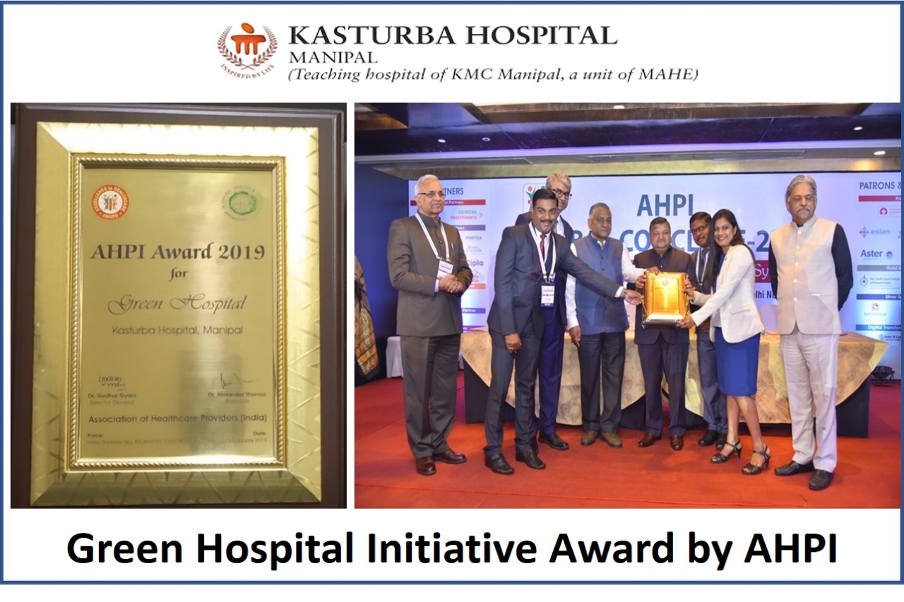 The Kasturba Hospital, Manipal was felicitated with an award for Green Hospital by the Association of Healthcare Providers, India (AHPI) on its sixth Global Conclave on "Outcome Based Healthcare Delivery System" held at Hotel Radisson Blue, Kaushambi (Delhi-NCR) on the 15th and16th February.