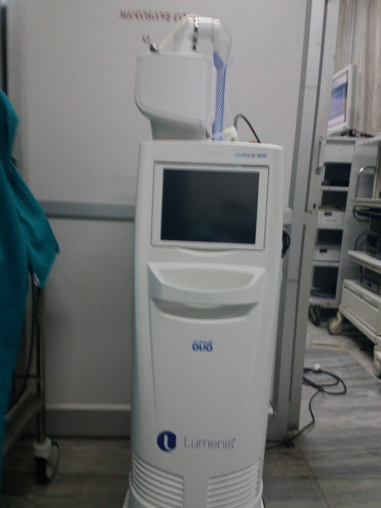 KTP 532 Laser – This equipment has a variety of uses in the nose (tumour removal, turbinoplasty, dacryocystorhinostomy, rhinosporidiosis, recanalization of stenosis / atresia), ear (stapedotomy, granulation tissue), throat (tonsillectomy, tumour removal, sleep apnoea surgery, pharyngeal pouch), larynx (benign and malignant tumours, cordotomy, cyst marsupialisation, laryngotracheal stenosis).