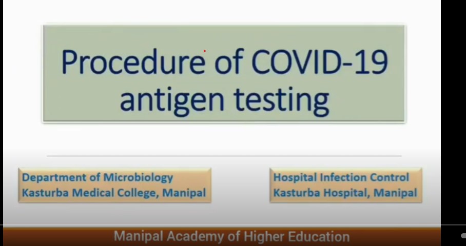 Department of Microbiology along with Hospital Infection control committee, KMC, Manipal was involved in development of educational video for performing COVID antigen test for the benefit of healthcare workers in August 2020. The link for the same is https://youtu.be/XFLJHk_9-fo