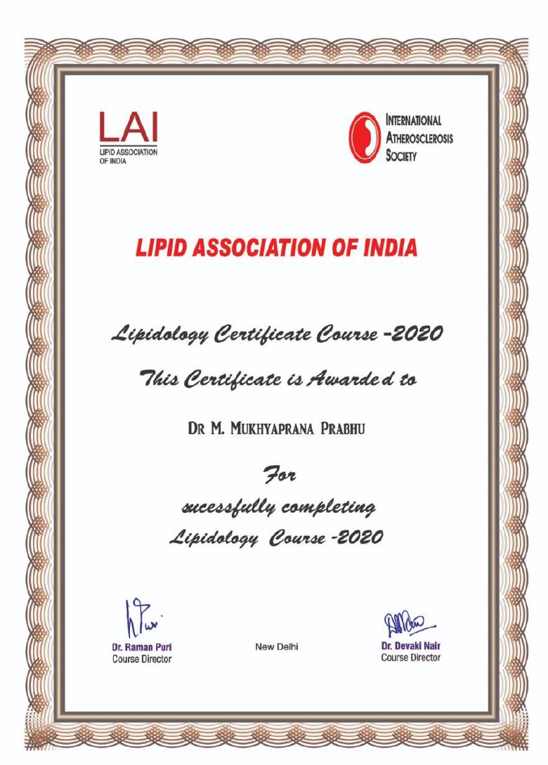 14) Dr M Mukhyaprana Prabhu Successfully completed Lipidology Course 2020.