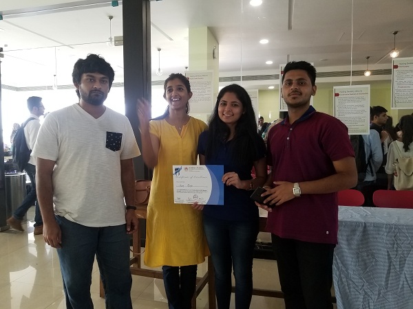 The "Dental hackathon: Making it Affordable" was held in Manipal from 28th-31st March 2019. Team REMIX - consisted of Ms. Vidushi Gupta, Mr. Lohan Moradia, Mr. Atishay Jain and Ms Sushmita Ghosh were awarded as one of the Top 5 teams and will be provided with a seed fund for the same.