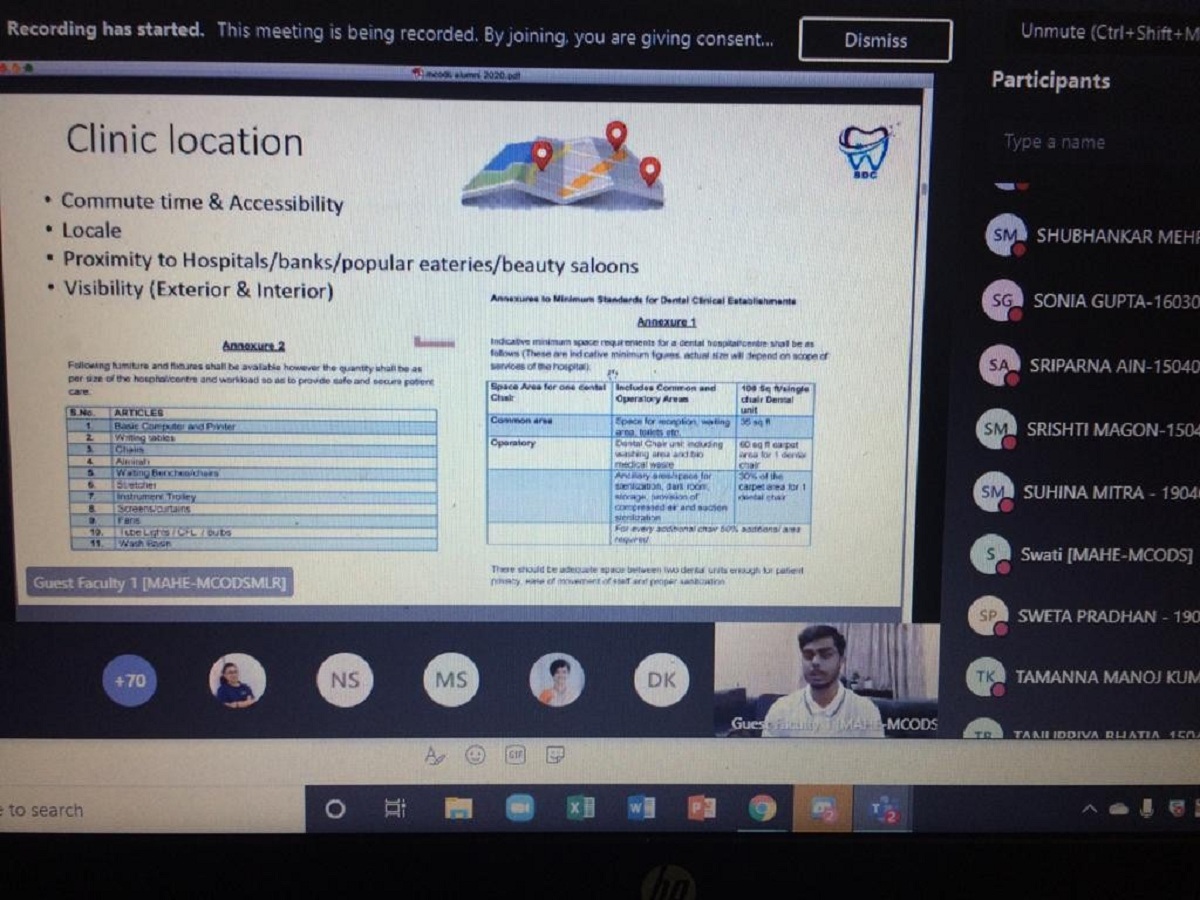 Thewebinar was concluded by a question and answer session, and the concluding remarks were given by Dr Neetha J Shetty. The webinar was well appreciated by the delegated. There were around 90 delegates including Post graduate students and Interns from MCODS Manipal and Mangalore.