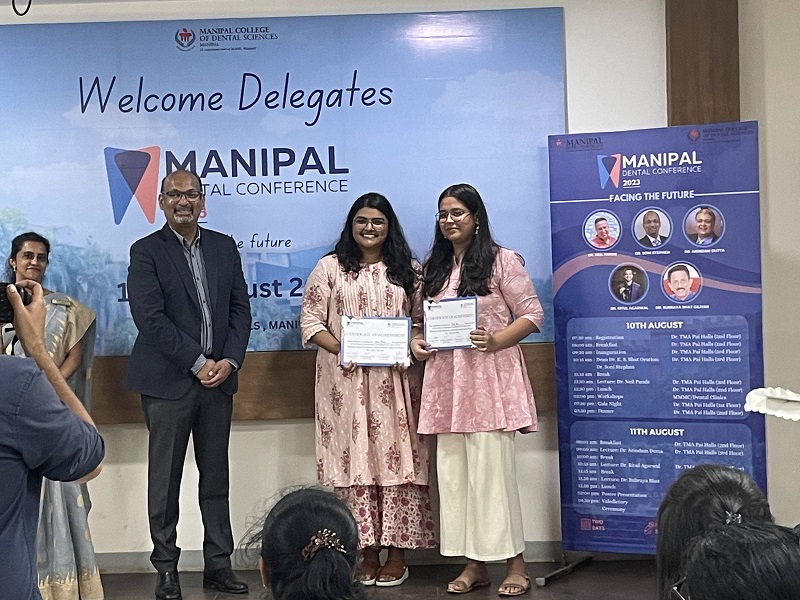 Ms. Dristi Kedia and Ms. Meera Manoj, Interns, MCODS Mangalore, has won second place in Poster Presentation for their poster titled “From Pixels to Perfection: Transforming Endodontics with 3D Printing” at the the second Manipal Dental Conference held at Manipal Dental College, Manipal from the 10th-11th August 2023, under the Guidance of Dr. Janina Loren Dsouza, Senior Lecturer, Department of Conservative Dentistry and Endodontics.