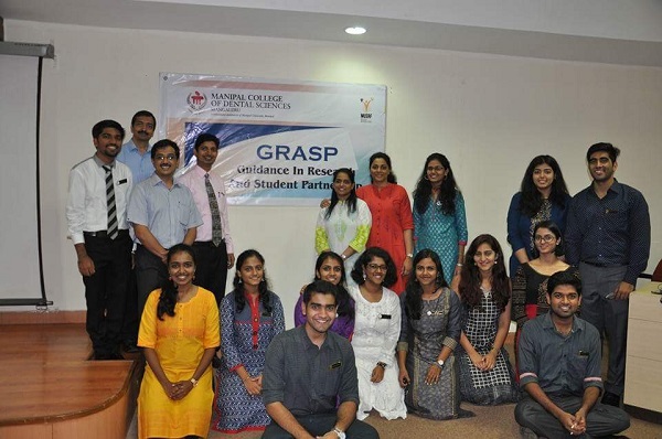The inauguration ceremony of GRASP (Guidance In Research And Student Partnership) was held on 23rd September 2017. The chief guest for the event was our Dean Dr. Dilip G. Naik and the occasion was graced by Dr. Chakrapani, Associate Dean, KMC, Mangalore who was the guest of honour. The inauguration was followed by the first session of the GRASP on 'How to select a topic, description of various study Designs' conducted by Dr. Animesh Jain, Prof and Head, Dr. Nithin and Dr. Ramesh Holla, Associate professors from Department of Community Medicine, KMC, Mangalore and Dr. Srikant, Prof and Head, Department of Oral Pathology MCODS, Mangalore.
