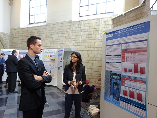 The topics covered under the conference were abuse neglect, anthropology archeology, age estimation, bite marks, disaster management, facial reconstruction, identification and virtopsy. Day 1 of the conference highlighted on the development of forensic odontology education from an undergraduate to a Ph.D level with focus on the changing role of a forensic odontologist. Her research poster was on ‘Evaluation of reliability of age estimation using Cone Beam Computed Tomography (CBCT)’. The session chairs were Dr.Anastasia Mitsea (Lecturer, Department of Oral Diagnosis & Radiology, School of dentistry, University of Athens) and Dr.Jannick De Tobel (Oral and Maxillofacial surgeon and researcher at the Dept. of Radiology and Nuclear Medicine, Ghent university).The session chairs appreciated her interest in the subject of forensic odontology at the undergraduate level and suggested extending the research topic to include people from diverse ethnic backgrounds in the study sample.