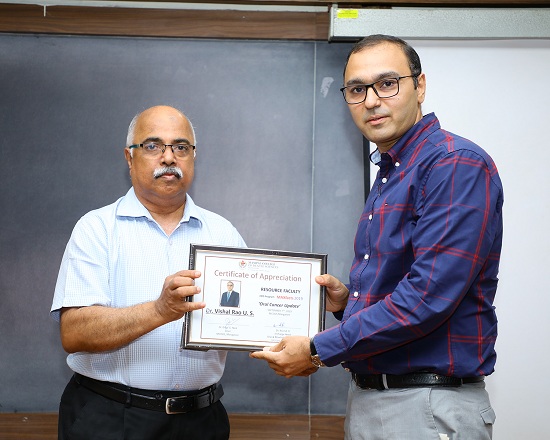 The Department of Oral and Maxillofacial surgery conducted Continuing Professional Development Program MAX facts 2019 titled “Oral Cancer Update” on the 7th of September, 2019. It was indeed a proud moment and great privilege for us to host the August gathering. The Chief Guest at the inauguration was Dr. B. H. Sripathy Rao, Principal of Yenepoya Dental College and a Teacher of Teachers. The Dean, Dr Dilip G. Naik welcomed the gathering and led the Felicitation of Honoured Chief Guest for his dedicated service to the field of Dentistry and Oral & Maxillofacial Surgery. Associate Dean, Dr. Premalatha Shetty, Professor Dr. Mohan Baliga, Dr. Arvind R, Incharge Head Oral & Maxillofacial Surgery, colleagues, faculty and students wished and thanked the Chief Guest. The accomplished guest speakers of the day were Dr. Vishal Rao and Dr. Deepak Balasubramanian. Dr. Vishal Rao U.S. is the Chief of Head & Neck Surgical Oncology & Robotic surgery at HCG Cancer Centre, Bengaluru. His area of expertise is head & neck surgery. Dr. Vishal Rao is the inventor of ‘AUM Voice Prosthesis’, a $1 speaking device for throat cancer patients. Dr. Vishal Rao enlightened the audience on Etiology, Immunology, Molecular biology, Recent trends in Management, Heterogeneity of oral cavity subsites, Potentially malignant disorders. The inspiring talk provided new information and ideas shaping the very forefront of cancer research. Dr. Deepak Balasubramanian is Clinical Associate Professor in the Department of Head & Neck Surgery at Amrita Vishwa Vidyapeetham, Kochi. He has trained extensively in Head & Neck Oncology and Reconstructive microsurgery and presented talk on Surgical considerations in Oral Cancer and role of neck dissection and was well appreciated by the audience. More than 70 delegates attended the program and actively participated in the deliberations and provided their feedback.