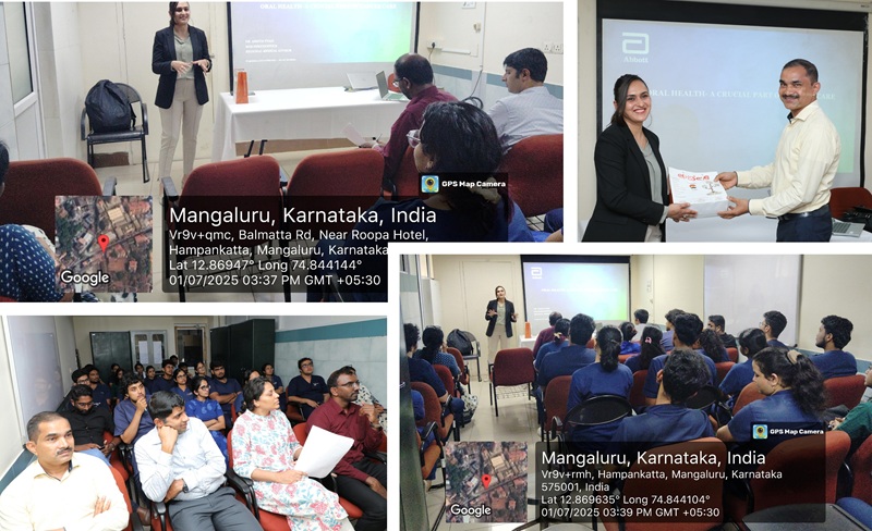 Guest Lecture on Oral Health – A Crucial part of Cancer Care by Dr Ankita Tyagi MDS, UG Alumna Batch of 2009 and Regional Medical Advisor for South India, Abbott Healthcare, was conducted 01/07/2025 for Students, Interns and Postgraduates of Department of Oral and Maxillofacial Surgery of MCODS, Mangalore.