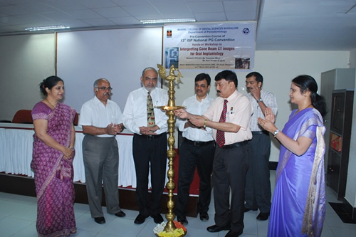 The preconvention workshop titled “Interpreting Cone Beam CT Images in Oral Implantology” was held at the Medical Education Department, KMC Mangalore, Light House Hill Road on 7th March, 2014. The program included a lecture on the basics of Implant Imaging as well as hands-on training on the Imaging System as well as Implant Planning using the software. 40 postgraduate students from various colleges in India participated in the workshop. Dr Praveen Birur, Professor and Head, Department of Oral Medicine and Radiology, KLE Society’s Institute of Dental Sciences Bangalore and Dr Ravikiran Ongole, Professor, Department of Oral Medicine and Radiology, MCODS Mangalore were the resource persons.