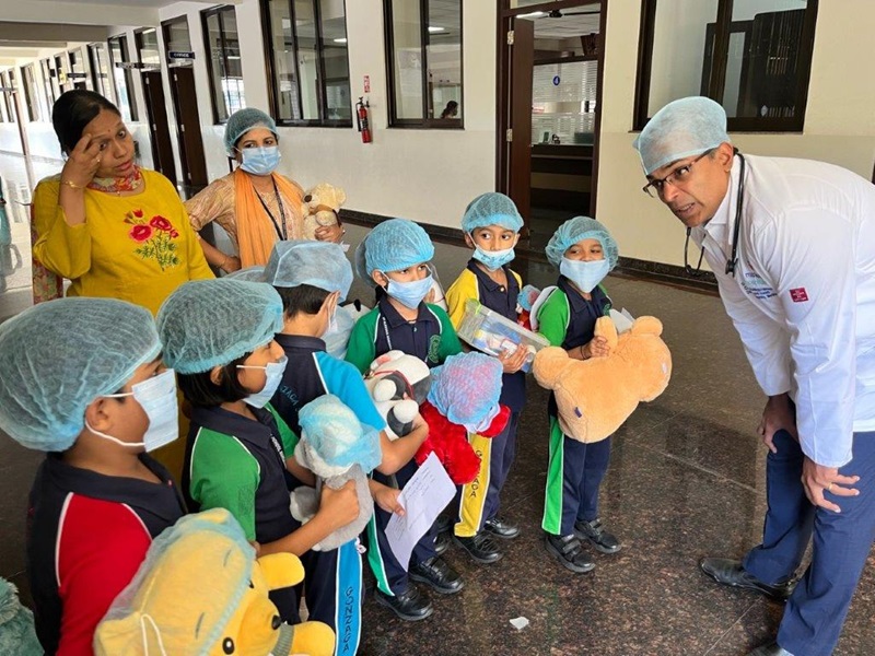 Kasturba Medical College, Mangalore initiated the ‘Teddy Bear Clinic’ School program in collaboration with the Department of Pediatric and Preventive Dentistry, Manipal College of Dental Sciences, Mangalore. This program was conducted for School children with teachers of St Aloysius Gonzaga , Mangalore. It was conducted to spread awareness of preventive health and dental issues. The Teddy Bear Clinic Programme aims to reduce anxiety in young children who have a fear of doctors, hospitals, and medical and dental procedures while enhancing their knowledge of health and diseases. Children aged 4-7 years got their favorite teddies to the clinic. As in the hospital setting, they registered their teddy names while presenting their complaints. Doctors demonstrated the clinical examination and showed usage of common instruments that will be normally used in the clinics like Mouth mirror, Explorer, stethoscopes, tongue depressors and otoscopes on the teddies. They were taken into the ambulance and shown the paraphernalia used for patient care. The programme was well appreciated by the children, and school authorities.