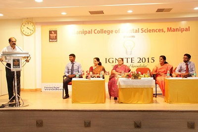 IGNITE, Undergraduate Students and Interns Intercollegiate Scientific Meet is an initiative to expose the young budding dentists to the world of scientific research and academic activities and also to provide a platform to sharpen their presentation and communication skills right from the undergraduate level. IGNITE 2015 was quite rightly tagged “IN PURSUIT OF KNOWLEDGE” is a continuation of the last two years of efforts to achieve this goal. This event was organized by the Student council of MCODS Manipal. Dr Vineetha, Associate Professor, Oral Medicine and Radiology was the Staff advisor for the event and Mr Shanahas, Intern was the Student Co-ordinator.