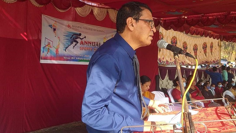 The Annual sports meet of Manipal College of Nursing, MAHE was held on Saturday 05th March 2022, with great passion and enthusiasm. The students were grouped into four groups namely Topaz, Ruby, Sapphire and Emerald. The inauguration began at 8.30 am in MIT Athletic Ground. Dr Judith A Noronha, Dean, MCON welcomed and introduced the Chief Guest Dr Ullas Kamath, Dean, Melaka Manipal Medical College, MAHE, Manipal to the gathering. All four groups marched coupled with thrilling music by the band of T A Pai English Medium High School, Kunjibettu, Udupi. The chief guest took the salute of the impressive march past of the students. The college flag was held by the student sports chairperson Ms Tenzin Dekhyi and led all the four march past groups. The students entered into the spirit of the occasion in a grand way with the oath being administered by the student sports chairperson. The chief guest addressed the gathering emphasizing the prominence of sports in life and declared the 31st MCON Annual Sports Meet open. Five of the best athletes of MCON took part in the lamp lighting ceremony. The best march past trophy was awarded to the group Emerald based on the evaluation by the judges. Dr Melita Sheilini, faculty sports advisor, MCON proposed the vote of thanks for the inaugural program.