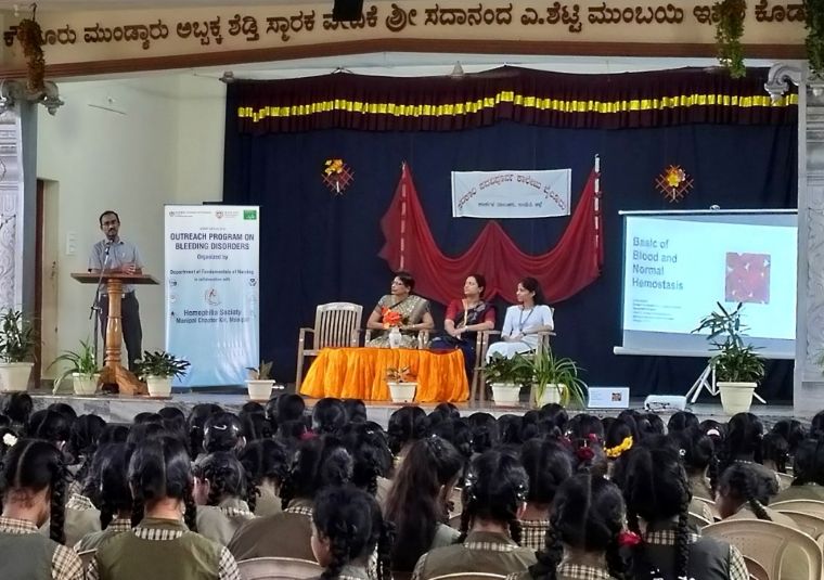 The Department of Fundamentals of Nursing, Manipal College of Nursing, in collaboration with the Hemophilia Society Manipal Chapter, Kasturba Hospital Manipal, organized an academia-industry collaborative awareness programme on "Bleeding Disorders" for adolescent girls at Government Pre-University College, Bailur, on July 21, 2025.