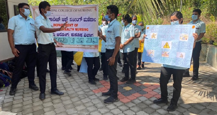 Second Year BSc Nursing students (Batch-IV) along with the faculty, Department of Community Health Nursing, MCON, MAHE, organized an awareness program on general safety measures on 20th January 2022 at 11 am in Patla.