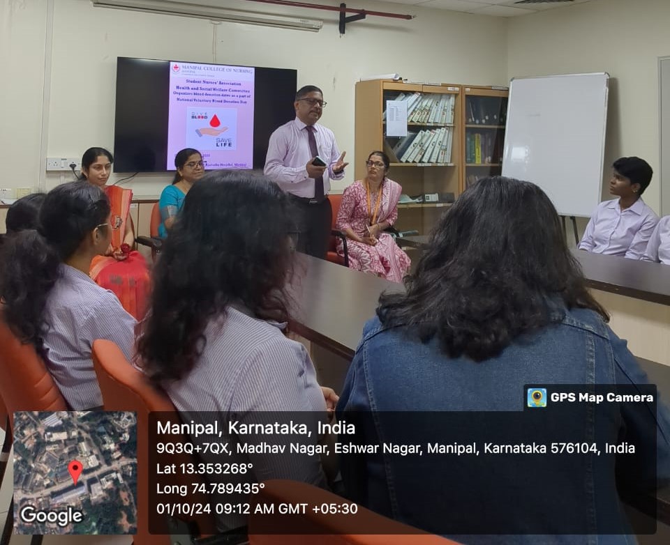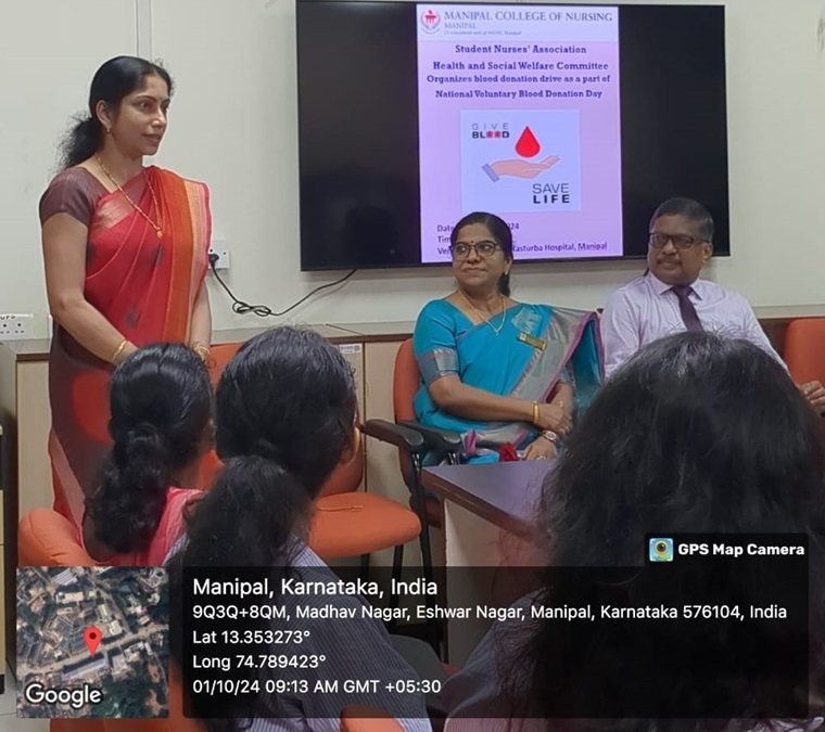The Health and Social Welfare Committee of Manipal College of Nursing, MAHE, Manipal has organized a blood donation drive on 1st October 2024 at the Blood Centre, Kasturba Hospital, Manipal, between 9.00 am and 4.00 pm as a part of the National Voluntary Blood Donation Day.