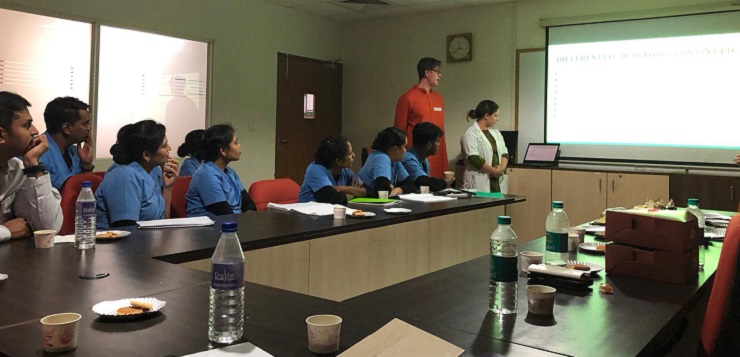Case-based discussion by students of ‘Nurse Practitioner in Critical Care,’ MCON, MAHE and Nurse practitioner students of MGH Institute of Health Professions, Boston guided by Dr. Jyothi Chakrabarty, Program Coordinator, MCON, Dr. Vishal Shanbhag, Medical Preceptor KH Manipal and Dr. Elissa Ladd, Associate Professor, Nursing, MGH Institute of Health Professions. The deliberations enriched students and faculty members from both the countries to understand the best practices in critical care.