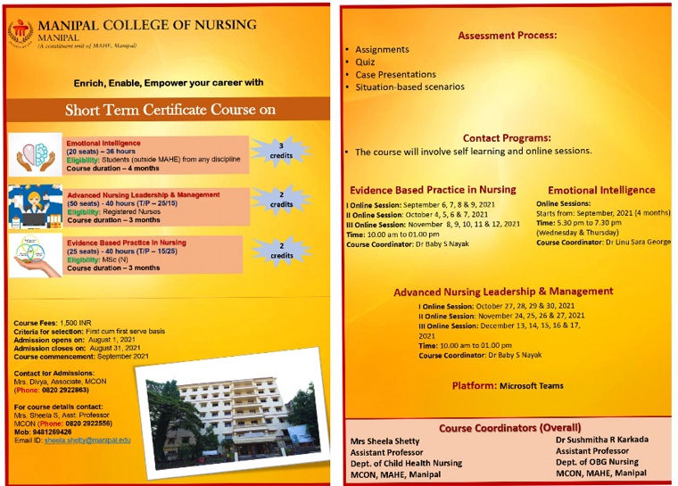 CERTIFICATE COURSES @ MCON, MAHE, MANIPAL