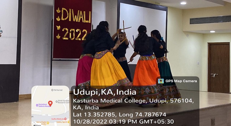 The Diwali celebration was organized by the Cultural Committee of the Student Nurses Association on 28 October 2022 at 3.00 pm at Dr.TMA Pai Hall, II floor. The Master of the Ceremony of the event Miss Rose Maria Baby, III year BSc Nursing welcomed the gathering. Students of I, II, and III BSc Nursing entertained the faculty and students with their remarkable dandiya dance performances.
