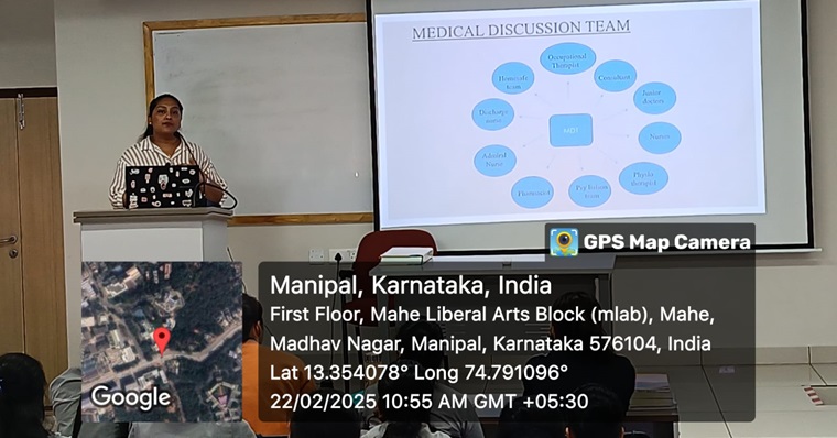Manipal School of Nursing, MCON, MAHE Manipal, hosted a guest lecture on "Care of the Elderly” on 22nd February 2025, between 10:30 am - 11:30 am. The target audience is First-year GNM students. Ms. Deona Daphney Denis D’Souza, Band 5, Staff Nurse at Northumbria Specialist Emergency Care Hospital, UK (Diploma (N) Batch 2019-2022) was the resource person. She emphasized NHS protocol for geriatric patients, primarily focused on “frailty” identification and management.
