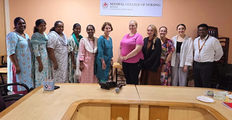 The Manipal College of Nursing had the opportunity to host the adjunct faculty, Dr. Toni Bewley, Senior Teaching Fellow, Edge Hill University, Lancashire, with four undergraduate students, who visited the Manipal College of Nursing, Manipal, for ten days. Dr. Radhika R Pai coordinated the visit. A detailed time plan was made for the team.