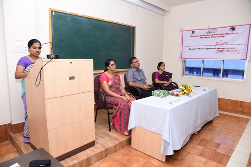 Mrs. Shalini G Nayak, Lecturer, Department of Medical Surgical Nursing gave a lecture on Qualitative data analysis using Open Code software followed by a session on Meta-synthesis by Mr. Vishnu Renjith, Research Scholar MCON Manipal. Each department presented research analysis of the last academic year and proposal for the next academic year. A total 75 faculty attended the FDP 2016.