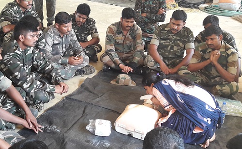 The faculty of Manipal College of Nursing MAHE, Manipal conducted the First aid and CPR training programme for the Anti Naxal Force Karkala Branch on 25th October 2018 from 9 am-1 pm at the training center for Anti Naxal group, Kukkundoor, Karkala, Udupi District.