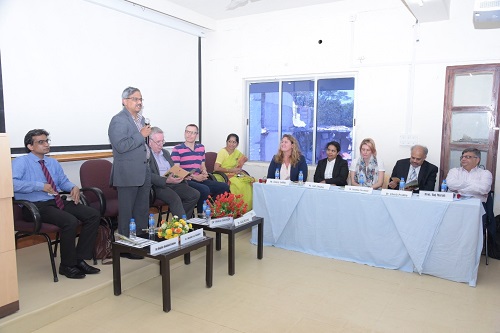 Dr Anice George, Dean, MCON, Dr Raghu Radhakrishnan, Director International affairs and collaboration, MAHE received the guests from Health Education England (HEE), UK. Team from HEE UK included, Prof Ged Byrne, Director, Global Health Exchange, HEE, Dr Colin Wasson, Medical Director, Stepping Hill hospital Stockport NHS foundation Trust Stockport South Manchester, Ms Tracey, Head of Nursing Programme, HEE, Ms Amanda Cheesman, Deputy Director of Nursing, WWL NHS Trust; Ms Sali Thomas, Advanced Nurse Practitioner, WWL NHS Trust; Dr Umesh Prabhu, Senior Lecturer and Mentorship Lead, Edge Hill University, Dr Shashidhara Madapura, Anesthetist, International Medical Graduate Tutor, Stepping Hill Hospital and Prof Raj Murali, Consultant Orthopaedic Surgeon, WWL NHS Trust, Head of International Medical Programme. Dr Elsa Sanatombi Devi, Team leader of Internationalization and global collaboration, MCON, MAHE Manipal introduced the guests to the august gathering with a highlight of how the direct recruitment set in as a pride of SMILE project of MAHE, Manipal. The link began when Dr Alfred Augustine, KMC Mangalore who took the project of collaboration with Edge hill which laid a foundation of trust between the two countries.