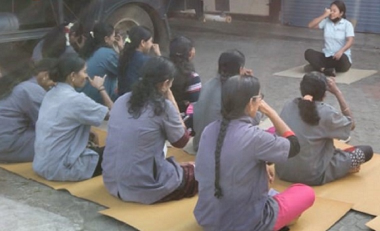 Followed by that, a health talk on prevention of occupational diseases/injuries was given by Ms Deeksha & Ms Ankita Pal, 4th Year BSc Nursing students using different A.V Aids presentations. Students also explained about the Ayushman Bharat Scheme and its services and demonstrated a few Yoga Technique/Exercises to the employees.
