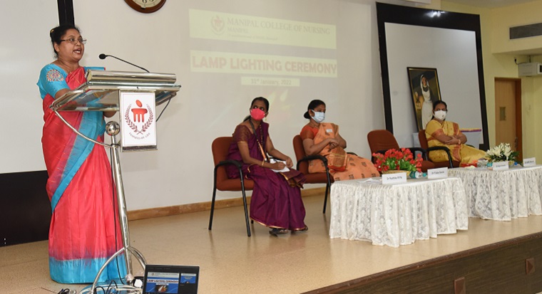 The lamp lighting ceremony for the 32nd batch of BSc Nursing students of Manipal College of Nursing, MAHE, Manipal was held on 31st January 2022 at Dr TMA PAI Lecture Hall, KMC, Manipal.