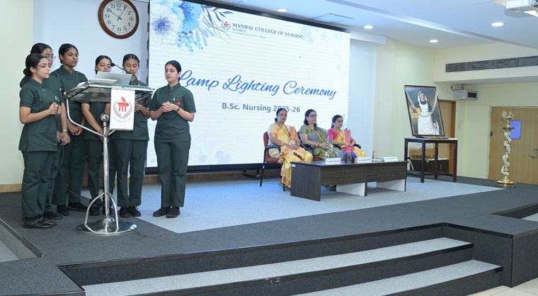 The Lamp Lighting Ceremony for the 37th batch of BSc Nursing students of Manipal College of Nursing (MCON), MAHE, was held on October 22, 2025, with pride and solemnity. The event, signifying the formal entry of the students into the noble nursing profession, was celebrated with deep reverence in the presence of dignitaries, faculty, students, parents, and well-wishers. The ceremony served as a poignant reminder of the profession’s values of compassion, service, and devotion to humanity.