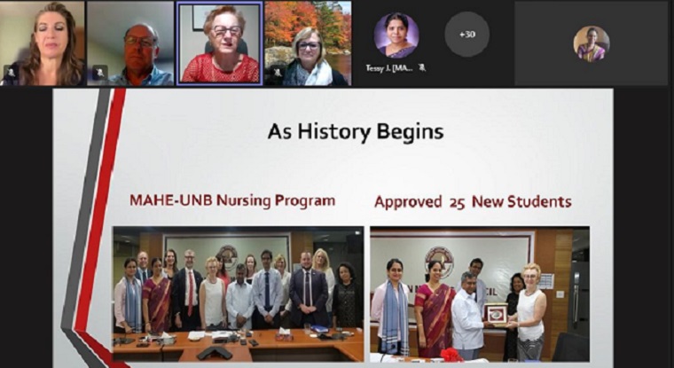 The orientation programme for the MAHE-UNB Dual degree BSc Nursing Programme was held on September 22, 2022, at 3:30 (IST) through an online platform. Orientation was given to all those students who have enrolled for the MAHE-UNB Dual Degree Programme for the academic year 2022-23. Dr Judith A Noronha, Dean, Manipal College of Nursing, Manipal gave a warm welcome to all and briefed them about the programme. Faculty Introduction and interaction were led by Dr Lorna Butler, Dean & Professor, Faculty of Nursing, University of New Brunswick (UNB), Canada. She gave brief details on UNB and also introduced the faculty members who are involved in teaching the students who are enrolled on the MAHE-UNB programme. Prof. Jessica Webster, Teaching Professor Faculty of Nursing, UNB gave a brief outline of the modules that will be incorporated into the BSc Nursing Semester Curriculum. Prof. Stephen Van Slyke, Teaching Professor, Faculty of Nursing, UNB shared his experience regarding classroom and clinical teaching and also the use of simulation in teaching. Prof. Jessica & Prof. Stephen shared the details of the modules that will be implemented and the significance of learning those modules as part of the dual degree program. Dr Karen Ursel, Teaching Professor, Faculty of Nursing, UNB briefed on the Canadian culture and the importance of the clinical judgement model.