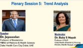 The day concluded with the plenary session 5 of the conclave on “Trend Analysis” by Dr Jeyaseelan, Professor of Biostatistics, MBRU of Medicine and Health Sciences, Dubai Health Care City, Dubai, UAE, and moderated by Dr Baby S Nayak, Professor and Head, Department of Child Health (Paediatric) Nursing, MCON, MAHE, Manipal. In the session, Dr Jeyaseelan focussed on the time-dependent analysis, its medical application and its special features. He elaborated that time series is a collection of observations made sequentially in time that is equally spaced. He highlighted the specifics in the analysis of data including the simple descriptive measures of plotting the data trend and seasonality, explanation of variations in variables using cross-correlation, prediction of future using past observations and the control. Further, he spoke on the different regression models for time series data with examples including harmonic regression and ARIMA model and stressed the suitability of usage.