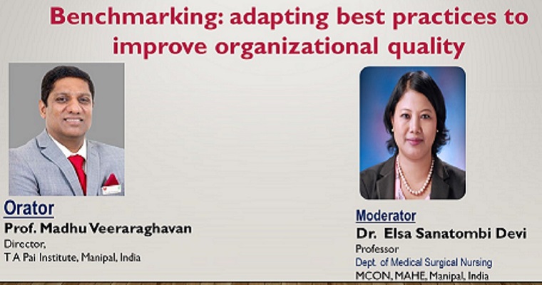 Oration in memory of Prof. (Late) P. P. Bhanumathi was orated by Prof. Madhu Veeraraghavan, Director, TA Pai Institute, Manipal, India on the topic “Benchmarking: adapting best practices to improve organizational quality” on 20th January 2022 at 1.00 pm. In the oration, Prof. Madhu spoke of creating a culture of quality, focusing on leadership, engaging people and maintaining relationships in order to identify the benchmark required for an institution. He emphasized the principles and benefits of quality management and the strategies for success ie, to enlighten the organizational leadership, provide continuous support to the employees and encourage ongoing learning. He elaborated on the nursing care benchmarking, dimensions of quality and ways to improve quality. He highlighted that in nursing care, benchmarking would be: best care, at the best cost, with the best comparison, at the best context and best outcome. He encouraged nurse leaders and nurses to be more connected, accept and learn fundamental societal requirements, emphasising that nursing care benchmarking has many faces and needs to be addressed based on the standards placed by the accreditation bodies. Dr Elsa Sanatombi Devi, Professor, Department of Medical-Surgical Nursing, MCON, MAHE, Manipal moderated this oration by introducing Prof. (Late) P. P. Bhanumathi and her contribution to the growth of the institution and the speaker.